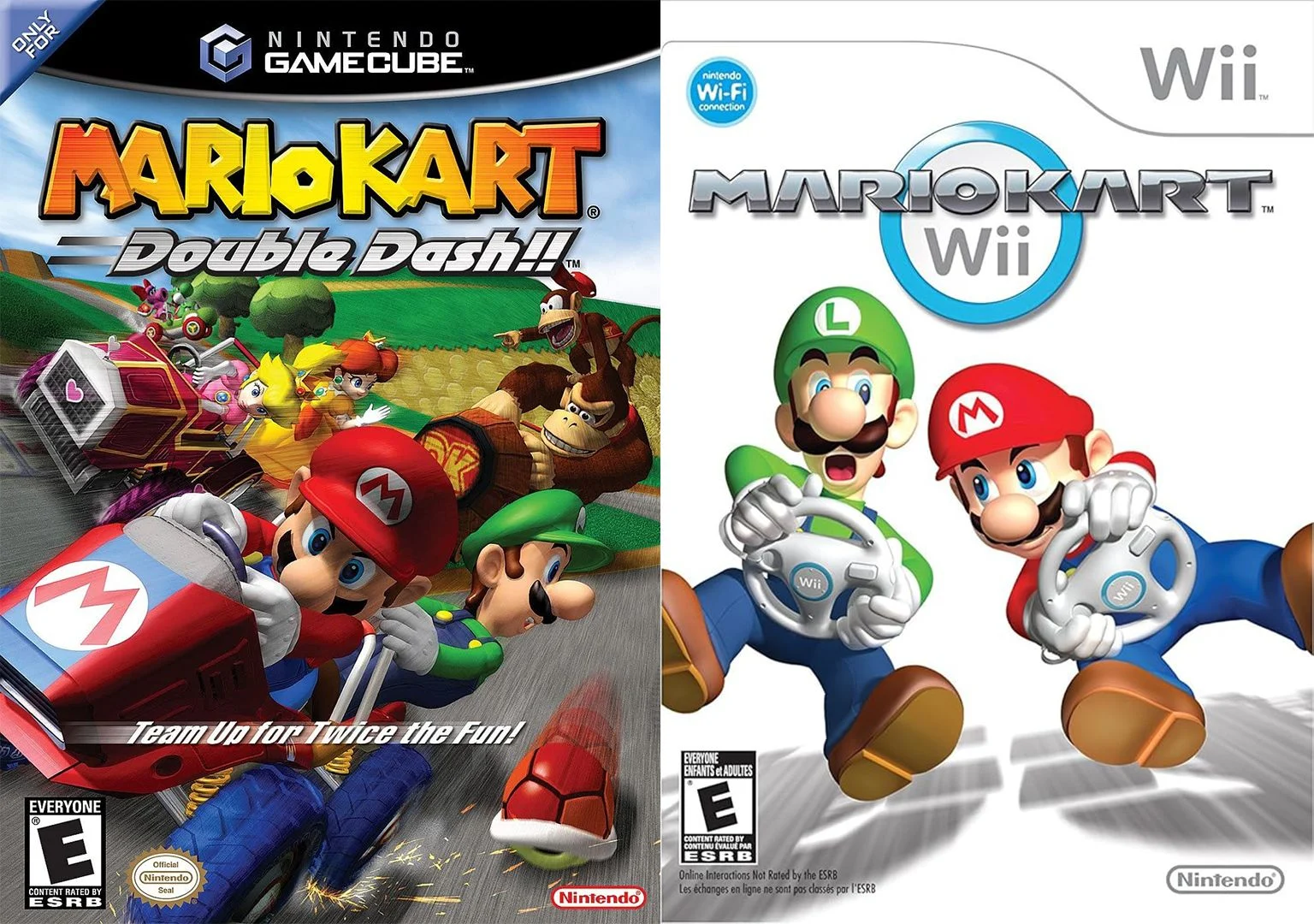 Até o lançamento de Mario Kart: Double Dash!! para o GameCube em 2003, a série utilizava uma fonte colorida e angular, alinhada com a identidade visual do universo Mario. No entanto, a partir de Mario Kart DS, em 2005, a Nintendo optou por um design mais voltado para o automobilismo, com linhas suaves e um acabamento cromado, que remete a emblemas de carros de corrida.
