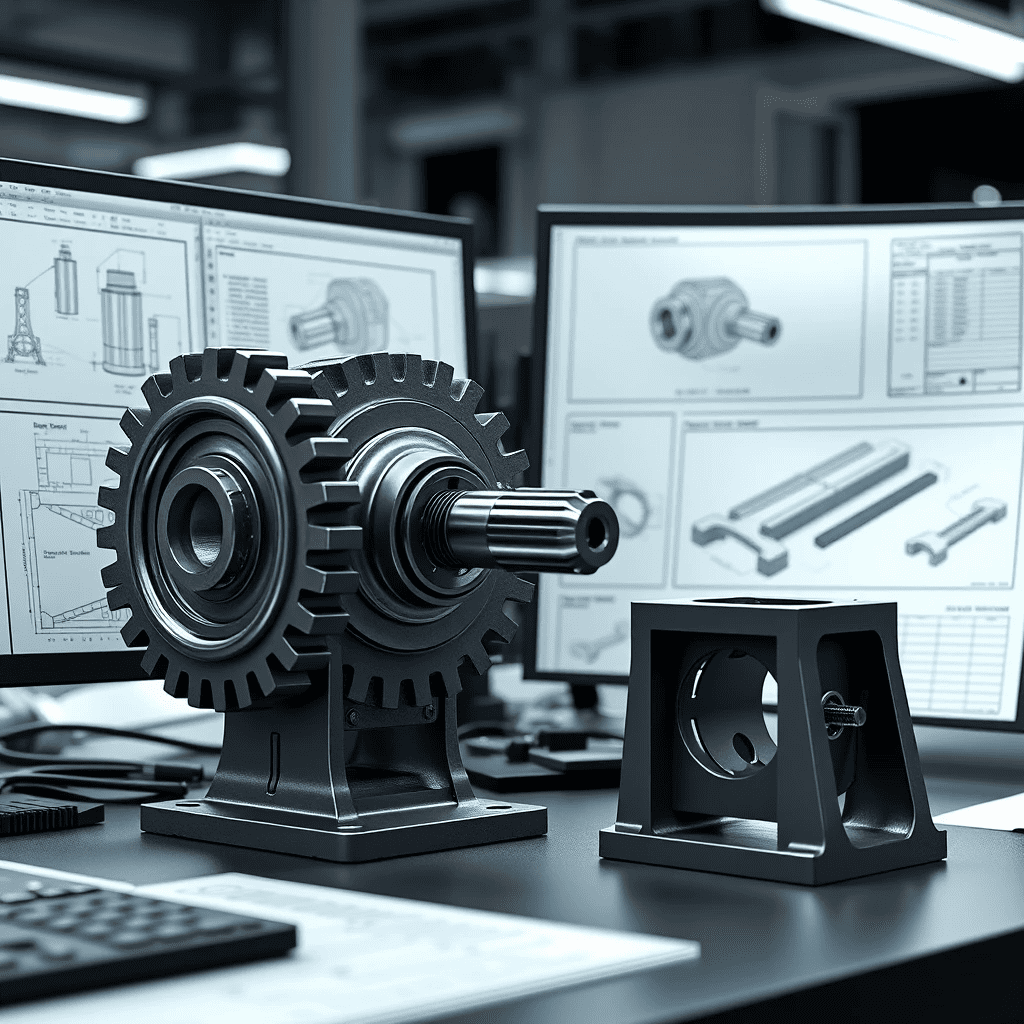 O Precision Parts é um kit de peças mecânicas que reúne desenhos técnicos para engrenagem, eixo e suporte. Cada componente é detalhado em vistas ortogonais, cortes e indicações de tolerâncias dimensionais, fornecendo arquivos DWG, PDF e STEP prontos para produção industrial e integração a processos de fabricação aditiva ou usinagem convencional.